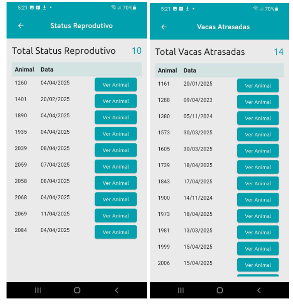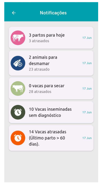 - Vacas com diagnóstico atrasado: se houver dados de diagnósticos que deveriam ter sido realizados e estão pendentes.