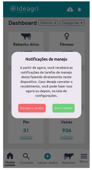 b) Excesso de notificações (consultores): ajuste as fazendas na tela de “configurações de notificações”, deixando apenas as que deseja acompanhar.