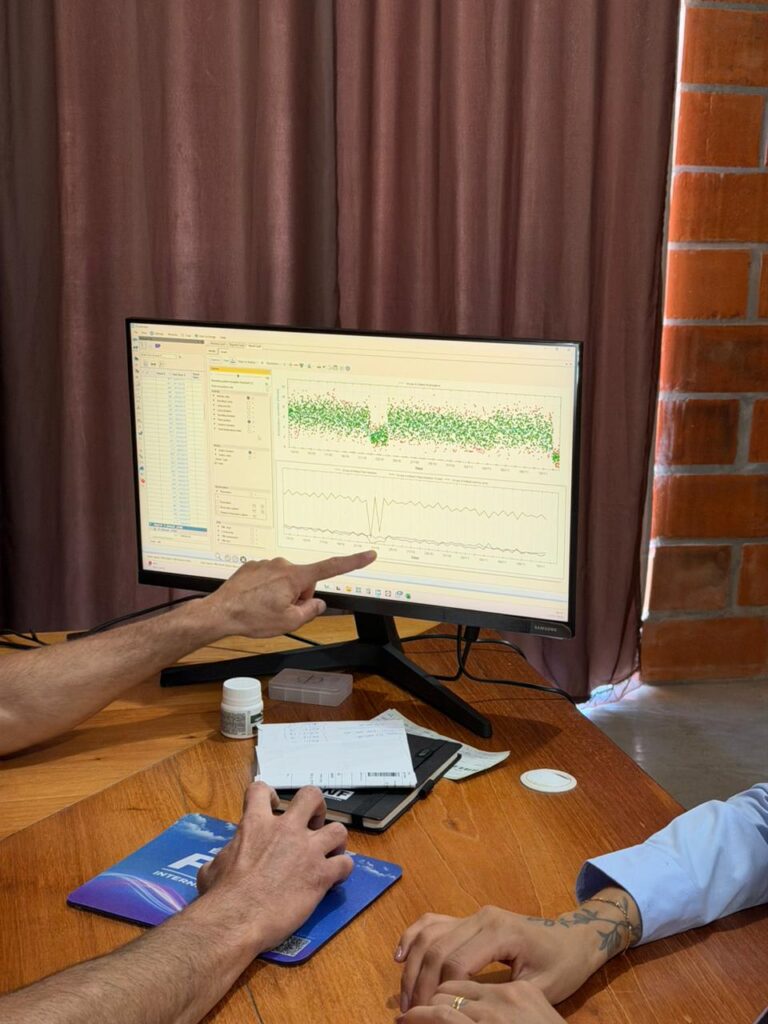 Foram realizadas palestras, visitas a clientes, análises de dados diretamente nas fazendas e sessões dedicadas à interpretação detalhada de gráficos, relatórios e tendências de comportamento animal.